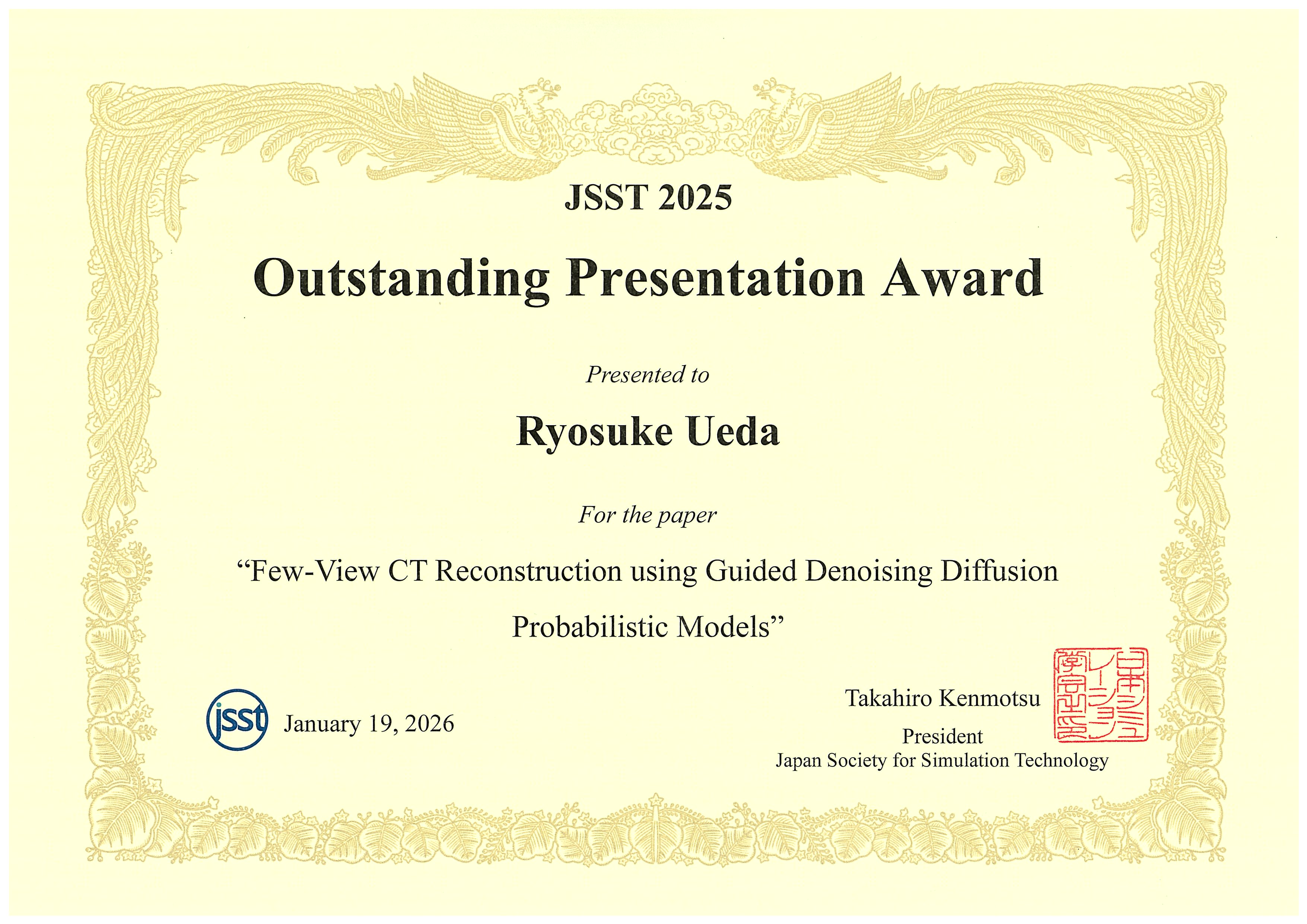 ■ 受賞課題:「Few-View CT Reconstruction using Guided Denoising Diffusion Probabilistic Models」