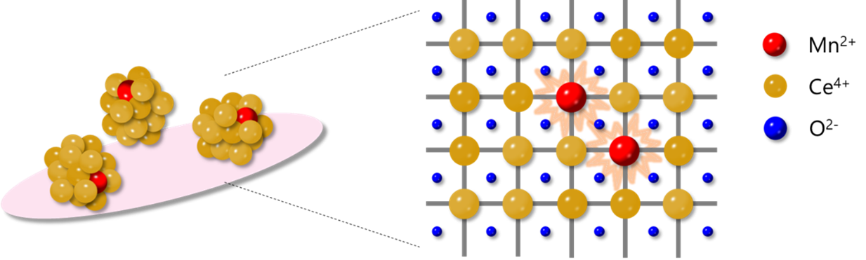 東北大学国際放射光イノベーション・スマート研究センターの横哲准教授と西堀麻衣子教授、東北大学材料科学高等研究所(WPI-AIMR)の阿尻雅文教授、東京大学物性研究所の原田 慈久教授らの共同研究グループは、新規酸素キャリアの開発を行い、低温で高活性な酸素キャリア材料を流通式超臨界水熱合成法(注1)により合成することを可能にしました。しかし、低温で高い活性が得られる要因については、粒径やMnの添加量だけでは説明がつかず、その起源は不明でした。本研究では、NanoTerasuを用いた軟X線吸収分光により、この材料の特性を詳細に解析しました。その結果、低温高活性材料の起源が、Mnが2価の状態でCeO2にドープされた化学状態にあることを突き止めました。このような化学状態でドープされたCeO2系材料はこれまでに報告例がなく、酸素キャリア材料の設計に新たな可能性をもたらす画期的な発見です。